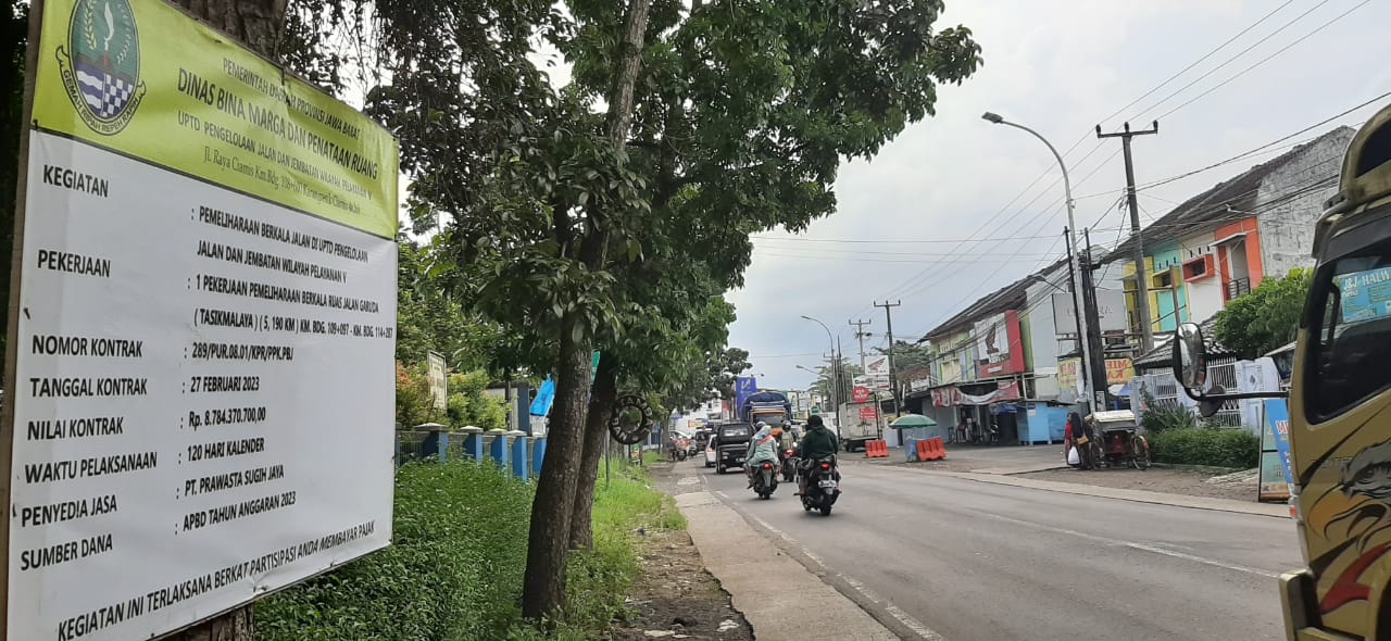 Selanjutnya paket pekerjaan pemeliharaan berkala jalan ruas jalan Tasikmalaya-Manonjaya Panaekan/Goler sepanjang