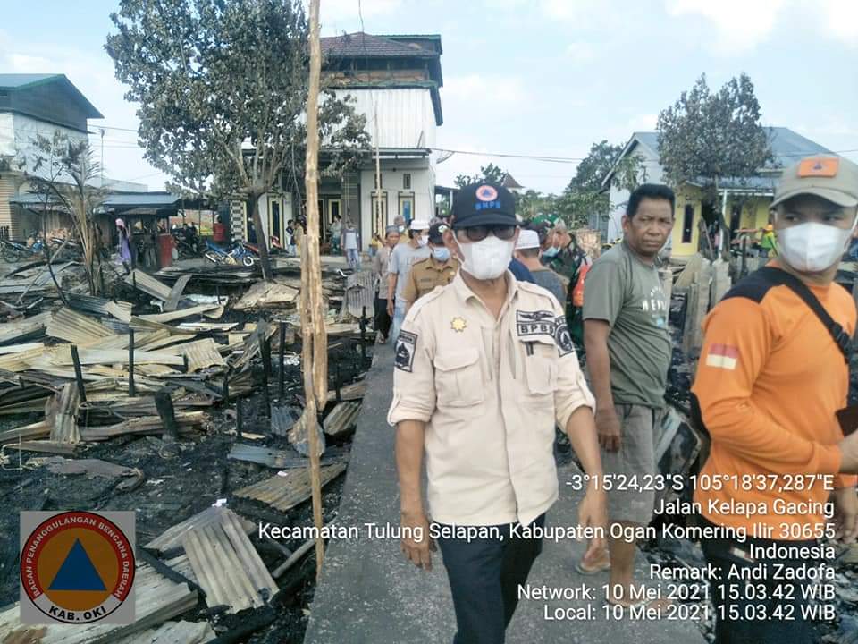 OKI, |Pelita Online| -Senin 10 Mei 2021M/28 Ramadhan 1442 H. Pkl.01.30 WIB, sijago merah telah meluluh lantakkan 20 unit bangunan rumah panggung kayu di Dusun I Desa Tulung Selapan Ilir Kabupaten Ogan Komring Ilir (OKI).