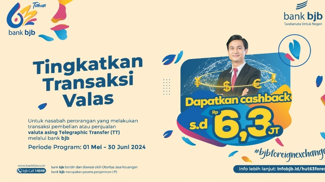 BANDUNG,||Pelita Online|| – Dalam semangat merayakan hari ulang tahunnya yang ke-63, bank bjb menghadirkan berbagai program istimewa, yaitu Promo Cashback bjb Foreign Exchange.