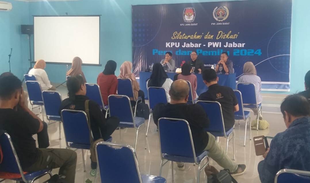 BANDUNG,||Pelita Online||Persatuan Wartawan Indonesia (PWI) Jawa-Barat, menggelar diskusi bersama Komisi Pemilihan Umum (KPU) Jawa-Barat di Aula PWI Jabar, Lantai 2, Rabu 20 September 2023.