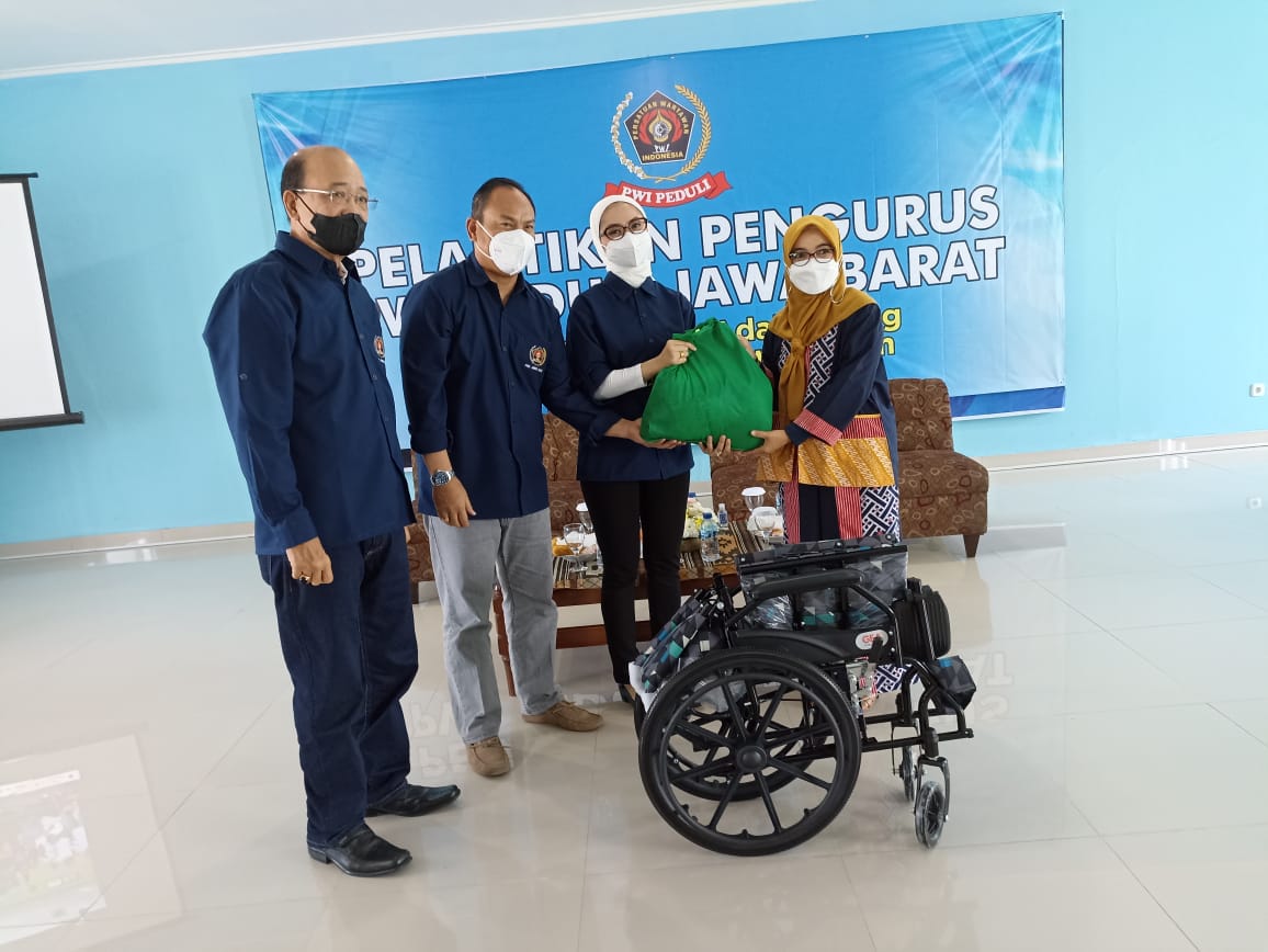 Dalam kesempatan tersebut, Ketua PWI Peduli Jawa Barat menyerahkan kursi roda kepada isteri almarhum H.Dadi Ruswandi yang diterima nyonya Hj Nani Dadi Ruswandi (**)