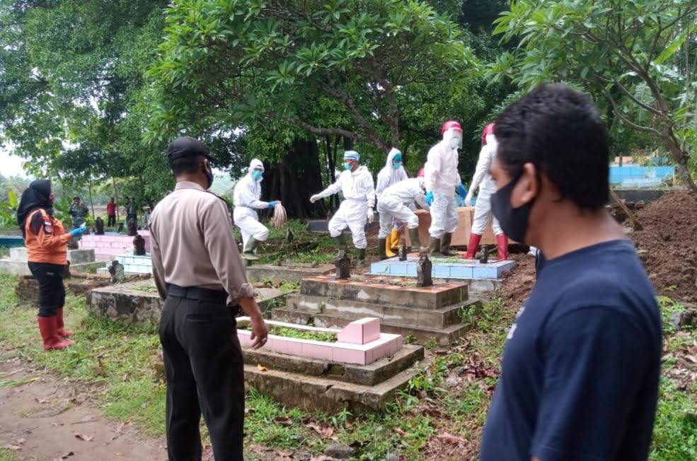 MAJALENGKA,|Pelita Online|– Bertempat di TPU Blok Lemahduhur RT 002 RW 002 Desa Karyamukti Kecamatan Panyingkiran Kabupaten Majalengka, Minggu kemarin (8/11/2020 Kapolsek Panyingkiran Polres Kabupaten Majalengka Jawa Barat IPTU Suparnanto bersama Muspika Panyingkiran, Puskesmas beserta Warga setempat melaksanakan Prosesi Pemakaman Jenazah yang diduga Covid-19 secara Protokol (Covid-19)