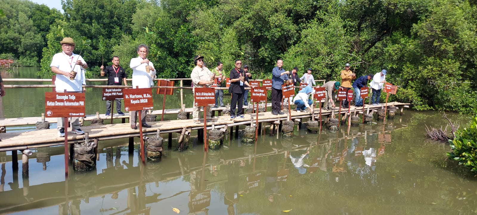 Hadir dalam acara ini jajaran pengurus PWI Pusat dan para Ketua PWI Provinsi, Kabupaten/Kota yang bersama-sama menanam pohon mangrove.