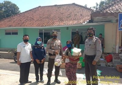MAJALENGKA | Pelita Online | Waka Polsek Sukahaji Polres Majalengka IPDA Dudi bersama Bhabinkamtibmas Monitoring Penyaluran Bantuan Paket Sembako Non Tunai ( BPNT ) Di Desa dan Kecamatan Sukahaji Kabupaten Majalengka sekaligus memberikan Himbauan Pencegahan Covid-19 kepada waraga menerima BPNT, Kamis (12/11/2020).