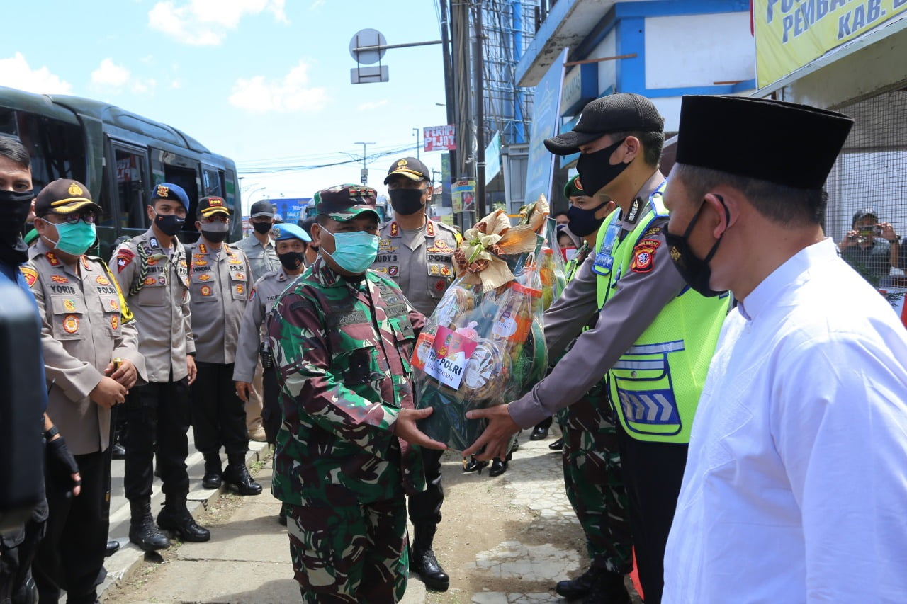 Disetiap pengecekan di masing-masing Pospam, Pangdam III/Siliwangi dan Kapolda Jabar memberikan bingkisan lebaran kepada anggota yang sedang melaksanakan tugas di Pospam PSBB dan sekaligus Pospam Ketupat Lodaya 2020.