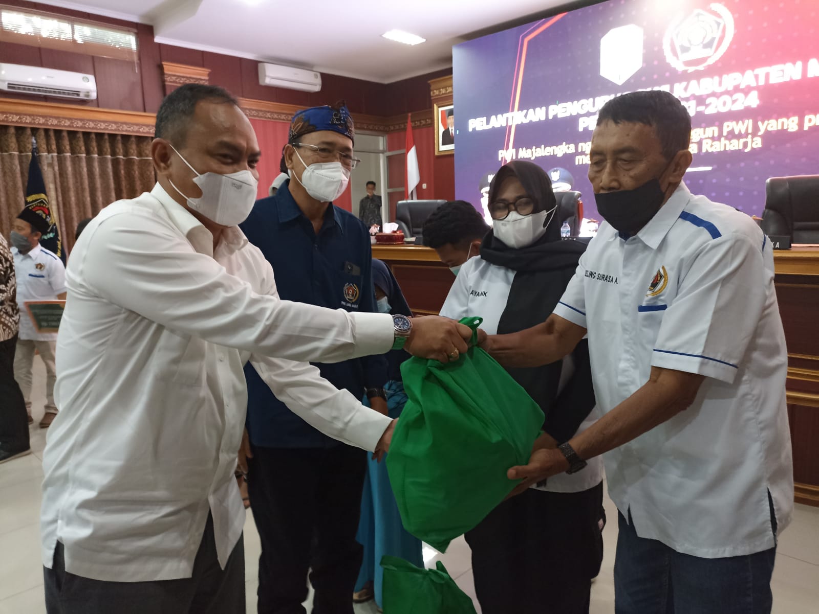 Paket Sembako tersebut diterima anggota PWI Kab. Majelengka di antaranya Ketua PWI Peduli yang diterima oleh anggota PWI, Keling Surasa dan Ketua PWI Jabar, diterima Anggota PWI, wartawati Ayang seusai acara pelantikan Pengurus PWI Kab. Majalengka Periode 2021 – 2024, di Gedung Pendopo Komplek Pemda Kab. Majalengka (9/12/2021).