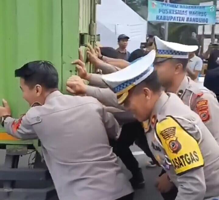 Melihat hal tersebut, Kapolresta Bandung dibantu para personil Satlantas langsung merespon cepat memberikan pertolongan kepada sopir truk tersebut dengan cara mendorong kendaraan tersebut secara bersama-sama agar tidak terjadi kemacetan ataupun hal lainnya.