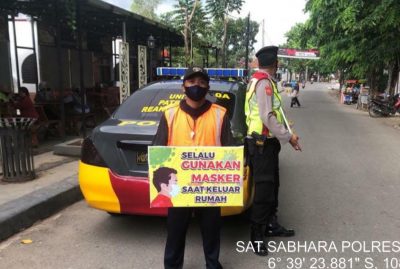 MAJALENGKA | Pelita Online | Upaya menekan penyebaran Covid-19 di masa Adaptasi Kebiasaan baru (AKB), Satuan Sabhara Polres Majalengka terus melaksanakan Patroli sosialisasikan 3M atau Memakai Masker, Mencuci Tangan, Menjaga Jarak guna mencegah penularan Covid-19 diwilayah hukum Polres Majalengka.