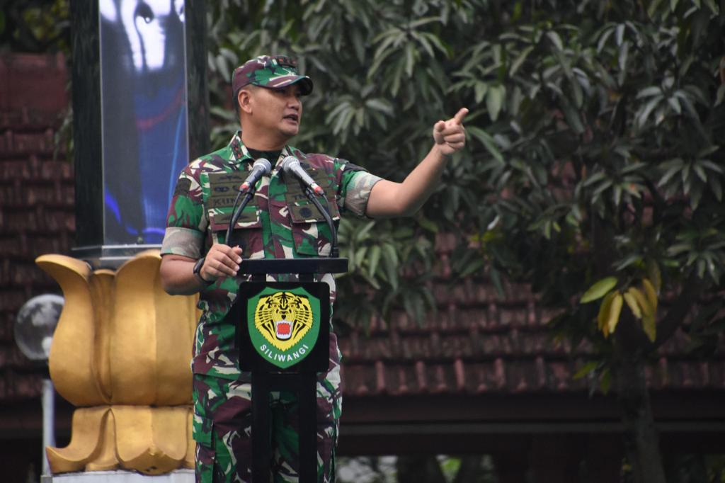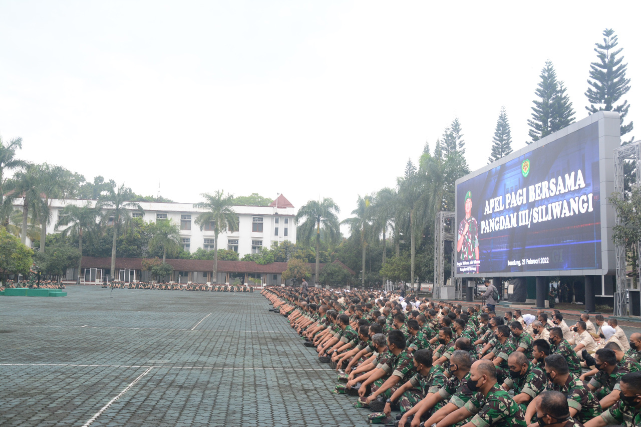BANDUNG,|PELITA ONLINE|- Pangdam III/Slw Mayjen TNI Kunto Arief Wibowo, S.I.P., memimpin Apel Gabungan yang diikuti oleh Prajurit Satpur, Satbanpur, Satbalak, Satkoter dan PNS jajaran Kodam III/Slw, berlangsung di Lapangan Makodam III/Slw Jalan Aceh, No. 69 Kota Bandung, Jawa Barat, Senin (21/2/2022).